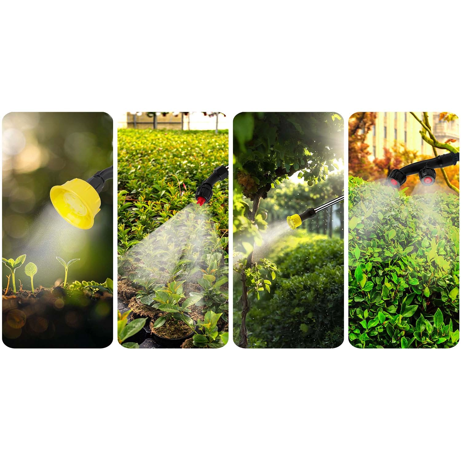 Wybierz idealny rodzaj oprysku: delikatna mgiełka dla wrażliwych roślin, płaski strumień do precyzyjnej pracy, czterootworowa dysza regulowana do uniwersalnego zastosowania lub podwójna głowica do szybkiego pokrycia szerszych rabat.