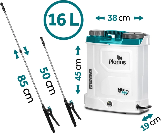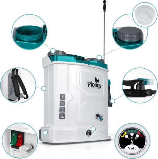 Opryskiwacz PLONOS Mix Pro 360 to niezawodny pomocnik do ochrony i nawożenia roślin na rabatach, trawnikach i w sadach. Wbudowany system mieszający utrzymuje roztwór roboczy jednorodny, co zwiększa skuteczność oprysku i eliminuje zapychanie dysz. Bateria 12 V/8 Ah zapewnia cichą pracę i autonomię do 9 godzin na jednym ładowaniu, dzięki czemu z łatwością obsłużysz także większe powierzchnie.