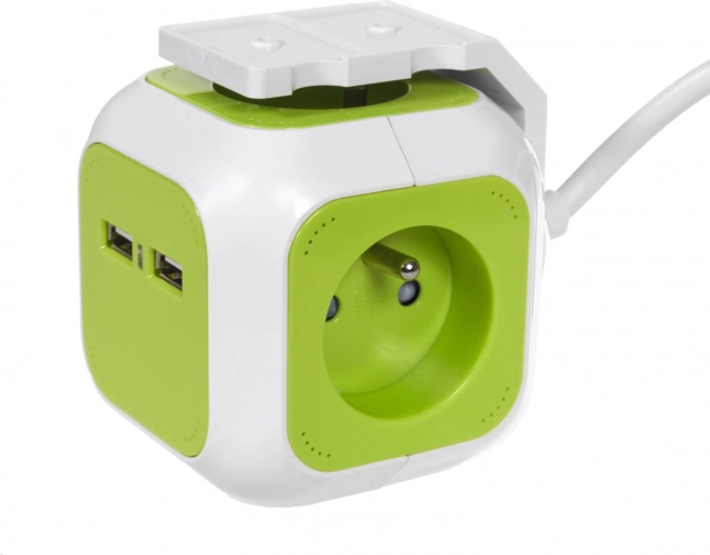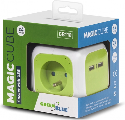 Rozgałęźnik GREENBLUE Magic Cube skutecznie zwiększa liczbę dostępnych gniazd i umożliwia jednoczesne zasilanie wielu urządzeń. Dwa zintegrowane porty USB zapewniają szybkie i wygodne ładowanie telefonu, tabletu czy słuchawek bez konieczności użycia osobnej ładowarki. Kompaktowa, sześcienna konstrukcja oszczędza miejsce i zapobiega blokowaniu sąsiednich gniazd.