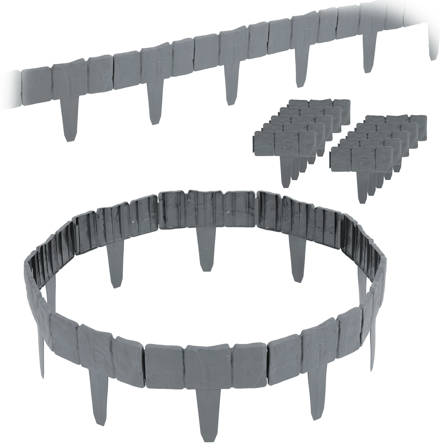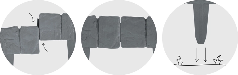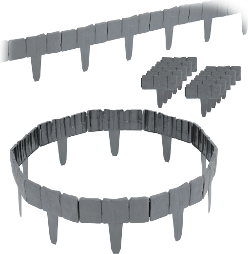 Utrzymuj rabaty i trawnik idealnie oddzielone dzięki obrzeżu ogrodowemu Plonos o długości 2,5 m. Modułowy system z zintegrowanymi kołkami umożliwia szybki montaż bez użycia narzędzi, a wytrzymały plastik PP jest odporny na promieniowanie UV, mróz i warunki atmosferyczne. Kamienny wygląd w eleganckim szarym kolorze świetnie pasuje do każdego ogrodu. Obrzeże zapobiega rozsypywaniu się kory lub kamyków na trawnik i chroni rośliny przed uszkodzeniami.