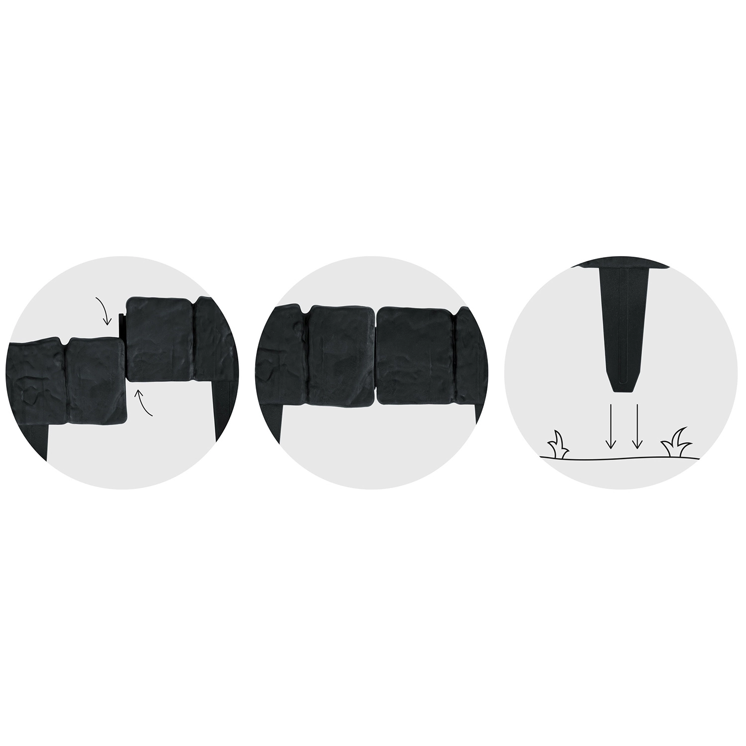 Łączone segmenty łatwo tworzą linie proste, łuki i okręgi. Idealne do obramowania rabat, drzew i powierzchni żwirowych.