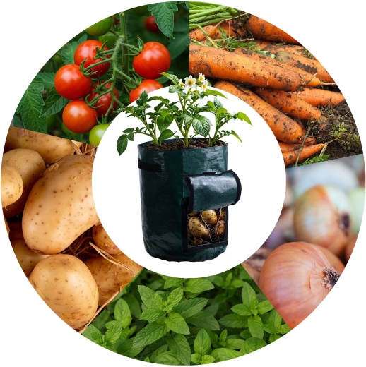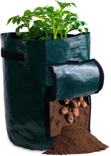Praktyczny worek uprawny o pojemności 43,3 l z przednim okienkiem na rzep dla łatwego zbioru ziemniaków i innych warzyw korzeniowych. Trwały i oddychający materiał PE wspiera zdrowy wzrost korzeni, a otwory drenażowe zapobiegają przelaniu. Dwa mocne uchwyty ułatwiają przenoszenie, worek jest wielokrotnego użytku i można go na zimę złożyć na płasko.