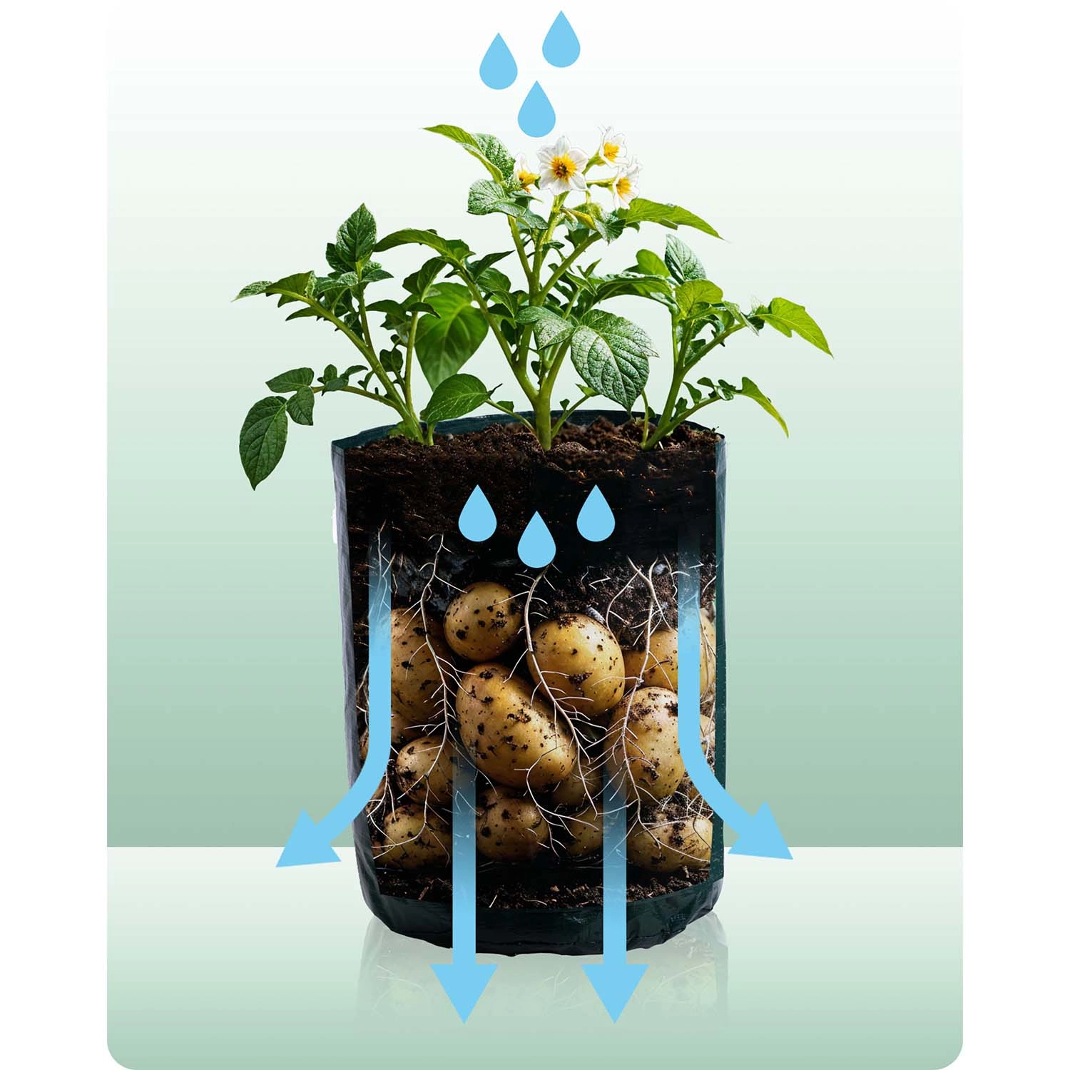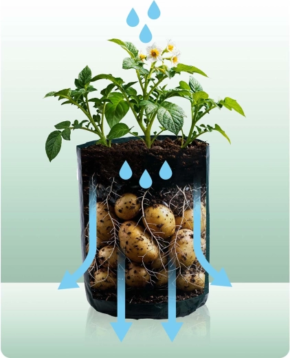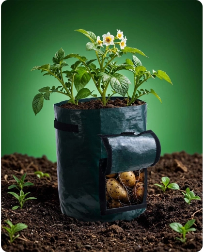 Odkryj łatwą uprawę na balkonie, tarasie i w małym ogrodzie. Worek do uprawy zapewnia optymalne warunki dla korzeni dzięki oddychającemu materiałowi PE i przemyślanemu wentylowaniu oraz odprowadzaniu wody. Dzięki przedniemu okienku na rzep skontrolujesz wzrost i zbierzesz tylko dojrzałe bulwy bez rozgrzebywania całej rośliny.