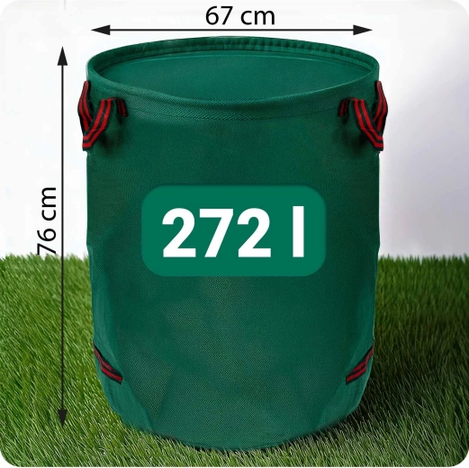 Worek ogrodowy o dużej pojemności 272 litrów pomieści skoszoną trawę, liście i gałęzie z całego ogrodu. Wzmocniony górny rant zapobiega samoczynnemu zapadaniu się, dzięki czemu worek trzyma kształt podczas napełniania i przenoszenia. Idealny pomocnik do regularnej pielęgnacji ogrodu i transportu bioodpadów na kompost.