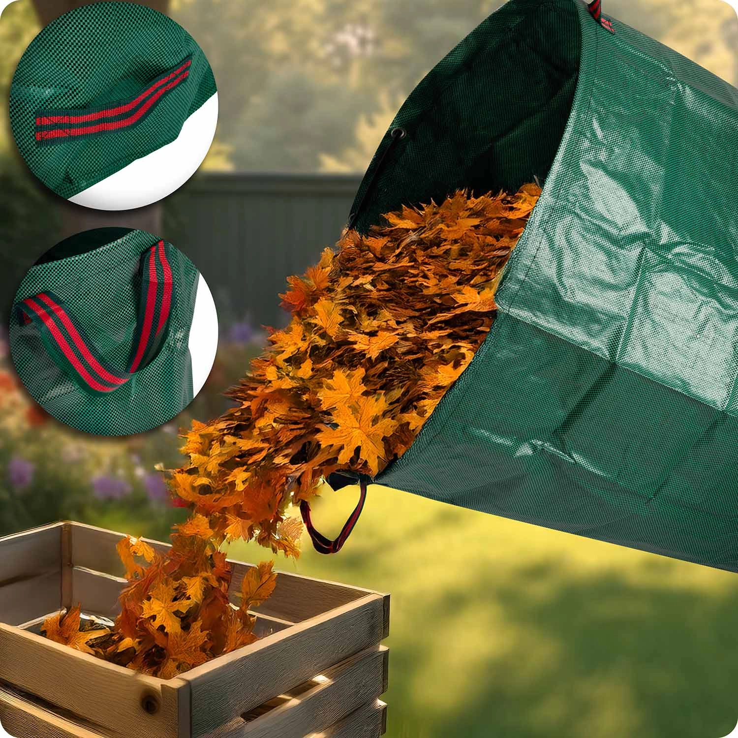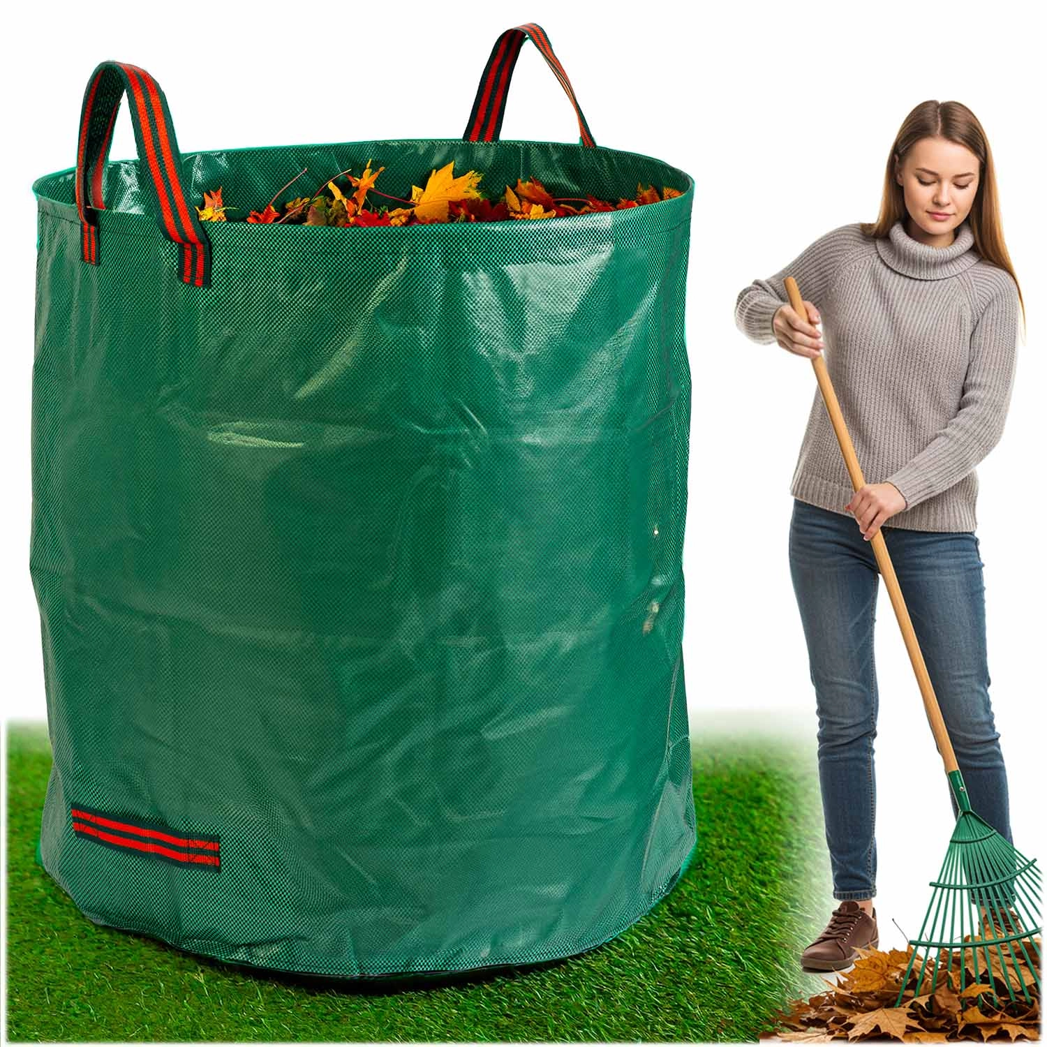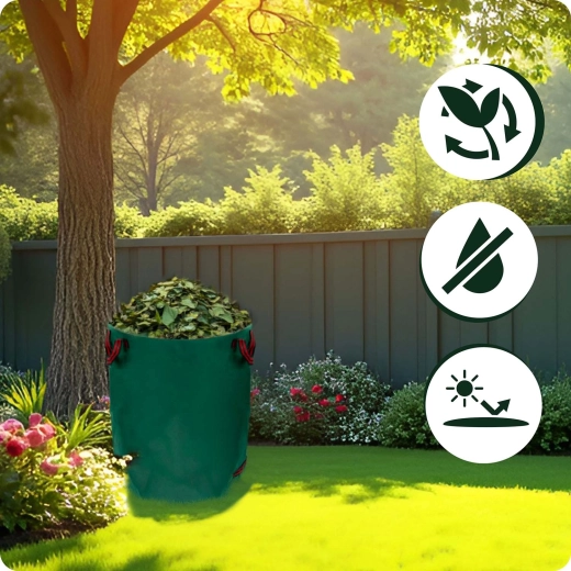 Praktyczny ogrodowy worek o pojemności 272 l do łatwego zbierania liści i odpadów zielonych. Wykonany z wytrzymałego materiału PP 150 g/m², który jest stabilizowany UV i odporny na mróz oraz deszcz. Dzięki dwóm parom wzmocnionych uchwytów worek łatwo przeniesiesz i wygodnie wysypiesz. Lekka konstrukcja trzyma kształt, a do oszczędnego przechowywania można ją złożyć na płasko.