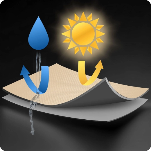 - Wodoodporny PE 180 g/m² – ochrona przed promieniowaniem UV i lekkim deszczem.