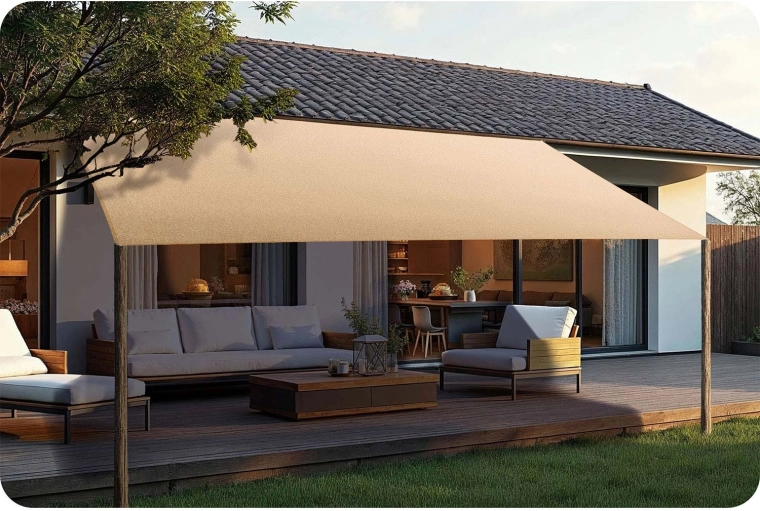 Praktyczny i stylowy żagiel przeciwsłoneczny o powierzchni 12 m² zapewni komfortowy cień dokładnie tam, gdzie go potrzebujesz. Wytrzymała tkanina polietylenowa (180 g/m²) chroni przed słońcem i lekkim deszczem – krople swobodnie spływają po powierzchni, dzięki czemu zewnętrzny wypoczynek jest przyjemny nawet podczas przelotnych opadów.