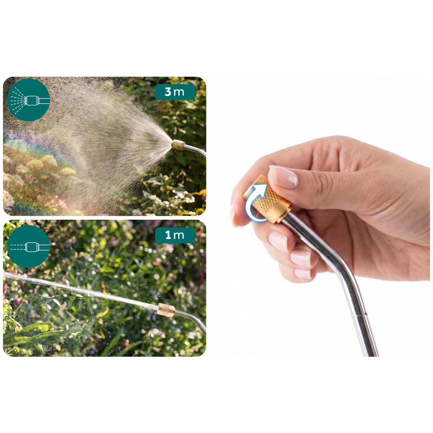 Od delikatnej mgiełki po silny strumień – płynna regulacja zapewnia precyzyjne dozowanie bez zapychania i długą żywotność dzięki mosiądzu.