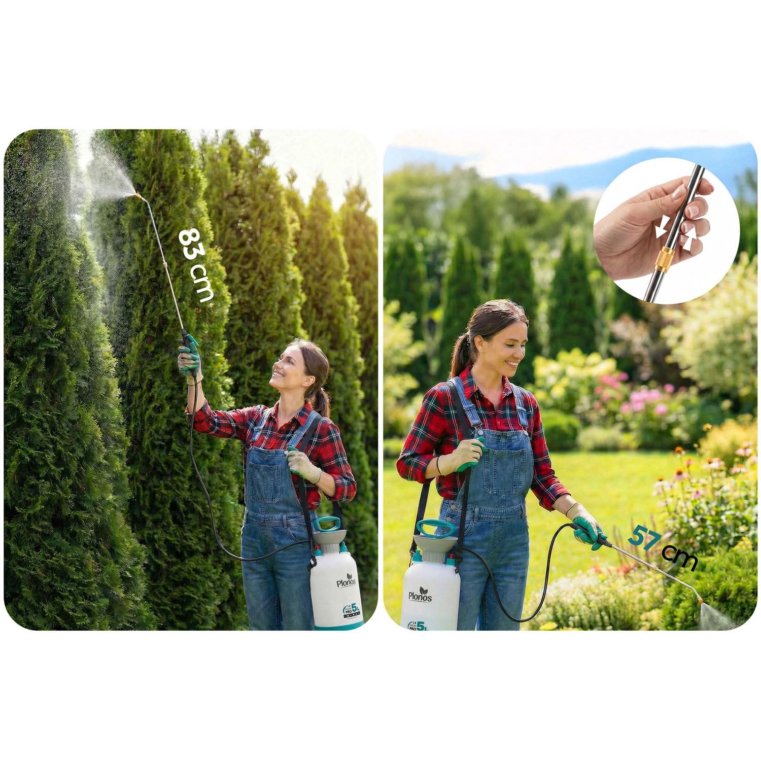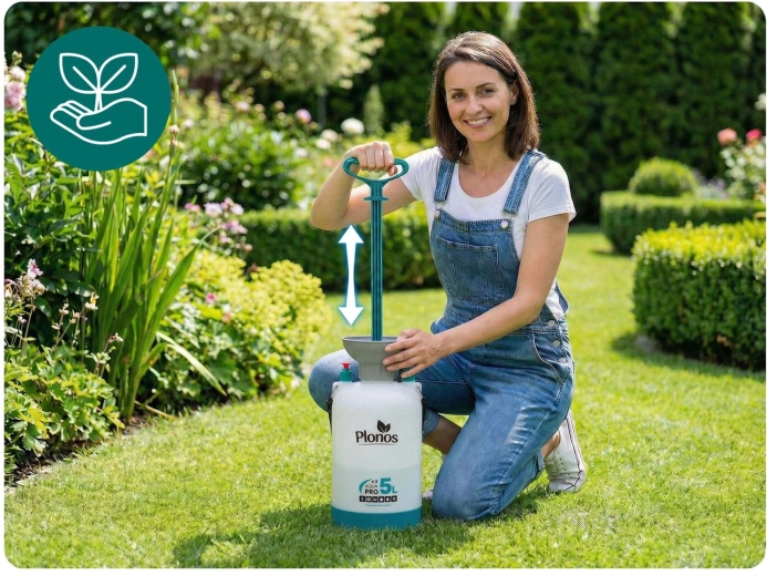 Zadbaj o zdrowe kwiaty, krzewy i warzywa z ciśnieniowym opryskiwaczem PLONOS o pojemności 5 litrów. Dzięki solidnej konstrukcji z PE, nierdzewnej lance i mosiężnej dyszy zyskasz długą żywotność, precyzyjne dozowanie i mniej przestojów. Szeroki zintegrowany lejek przyspiesza napełnianie bez bałaganu, a regulowany pas równomiernie rozkłada ciężar dla wygodnej pracy także na większej powierzchni.