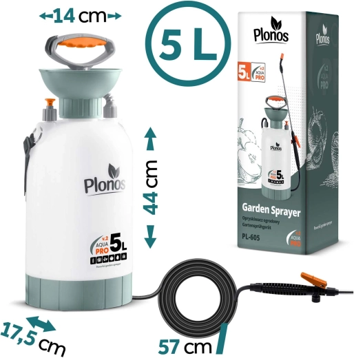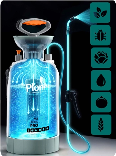 Zmień swój ogród w zieloną oazę z ręcznym opryskiwaczem PLONOS AQUA PRO 5 l. Wytrzymały zbiornik z PE jest odporny na nawozy i chemię, lanca ze stali nierdzewnej i mosiężna dysza gwarantują długą żywotność oraz precyzyjne rozpylanie. Dzięki wbudowanemu lejowi szybko i czysto uzupełnisz płyn, a regulowany pas naramienny ułatwi pracę nawet przy dłuższym użytkowaniu.