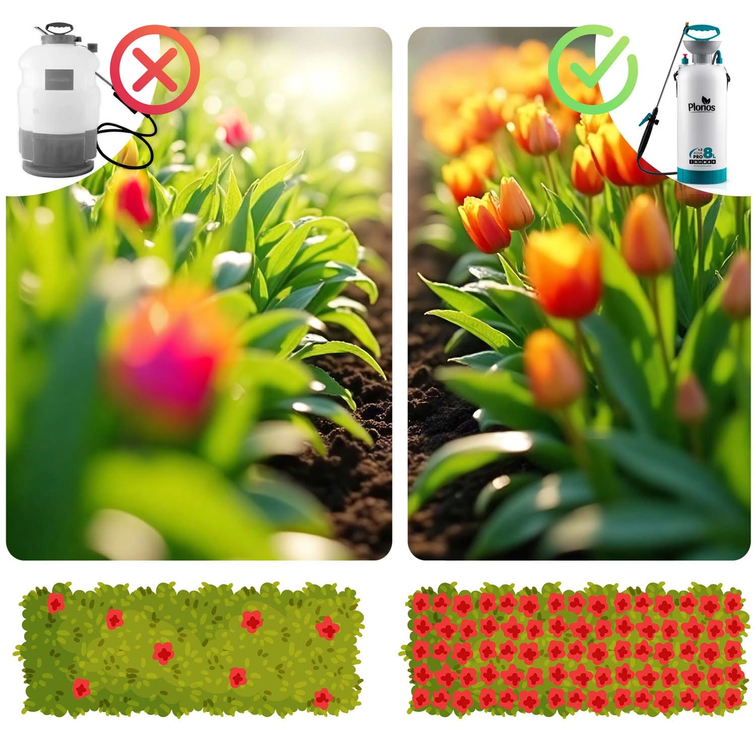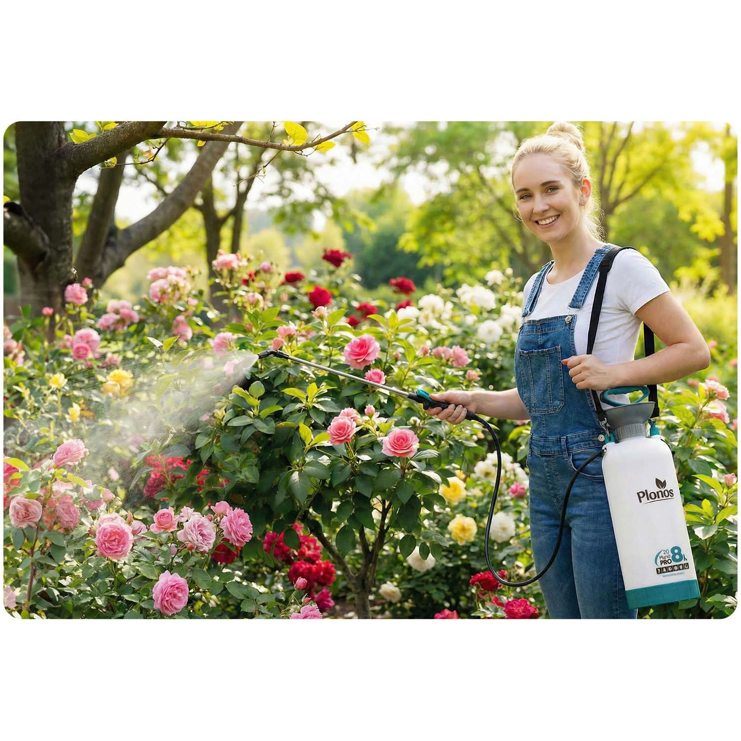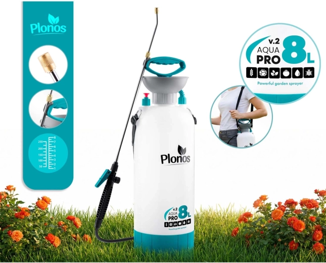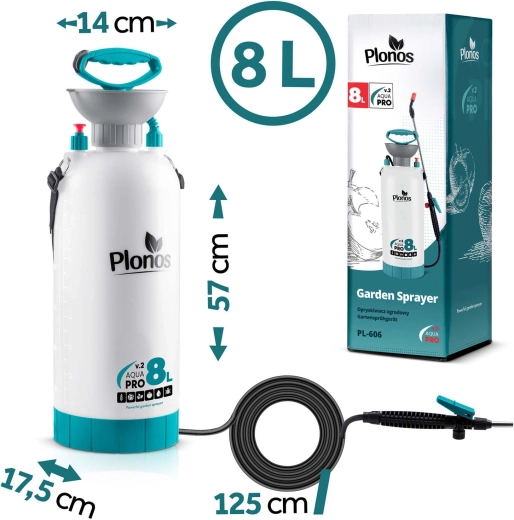 Opryskiwacz Plonos 8 l to niezawodny pomocnik do codziennych prac ogrodniczych. Dzięki wysokiej jakości materiałom – stali nierdzewnej, mosiądzu i wytrzymałemu PE – jest odporny na środki chemiczne i długotrwałe użytkowanie. Kontrolowane ciśnienie 2,76 bar równomiernie rozprowadza ciecz i gwarantuje precyzyjne efekty przy oprysku kwiatów, warzyw, krzewów i drzew.