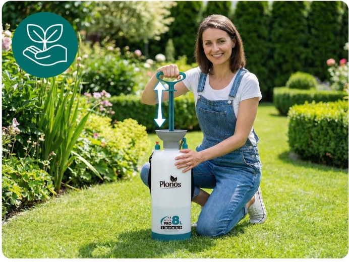Seria Plonos oferuje opryskiwacze z czytelną podziałką, solidną pompą i metalową lancą. Wybierz pojemność w zależności od zakresu prac w ogrodzie.