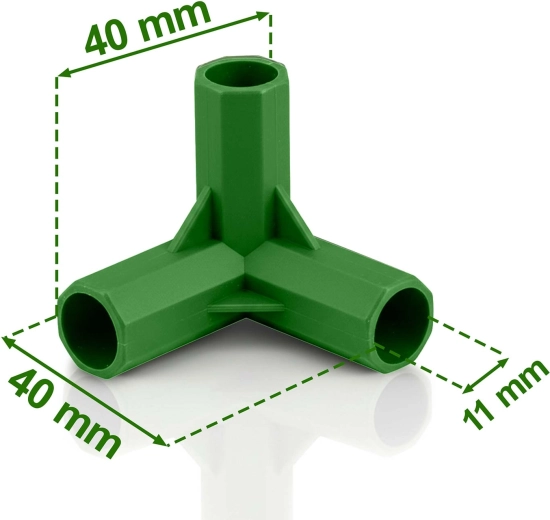 Trójdrożne złączki typu Y z trzema gniazdami pozwalają łatwo połączyć pręty pod kątem ok. 120°. Zbudujesz kratkę lub ramę w kilka minut bez użycia narzędzi.