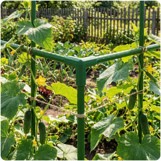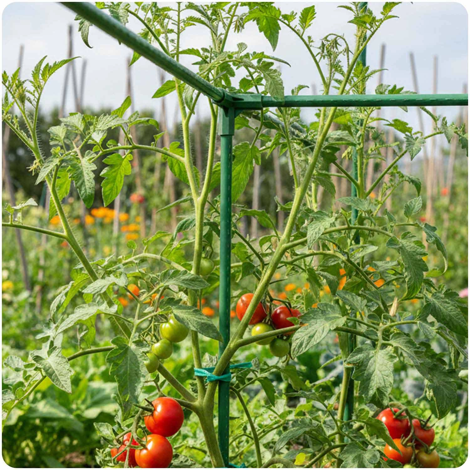 Stwórz solidne ramy dla pomidorów, ogórków czy fasoli. Zielone złączki z prętami 11 mm utrzymują rośliny w pionie, poprawiają przewiewność oraz dostęp do zbiorów.