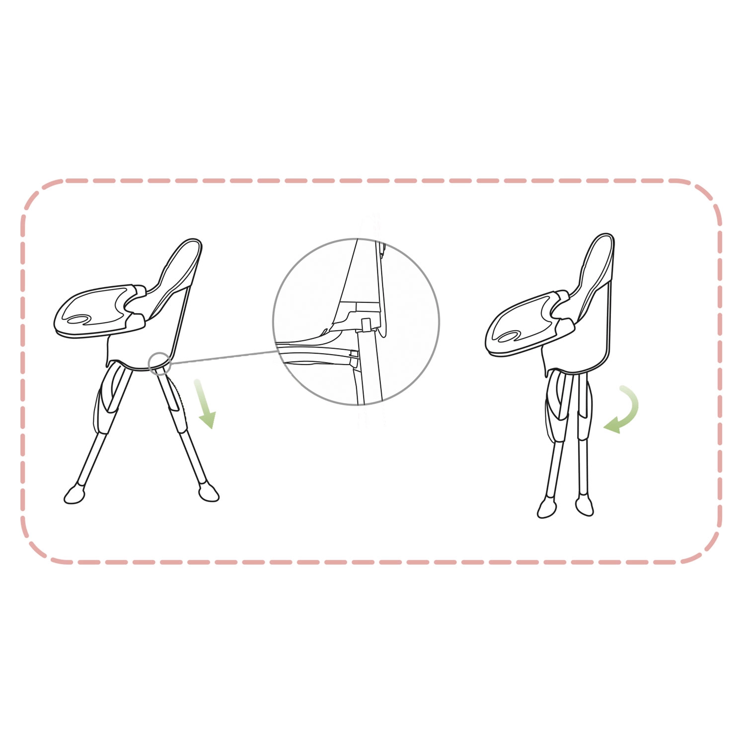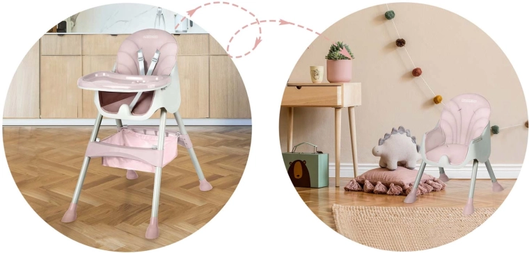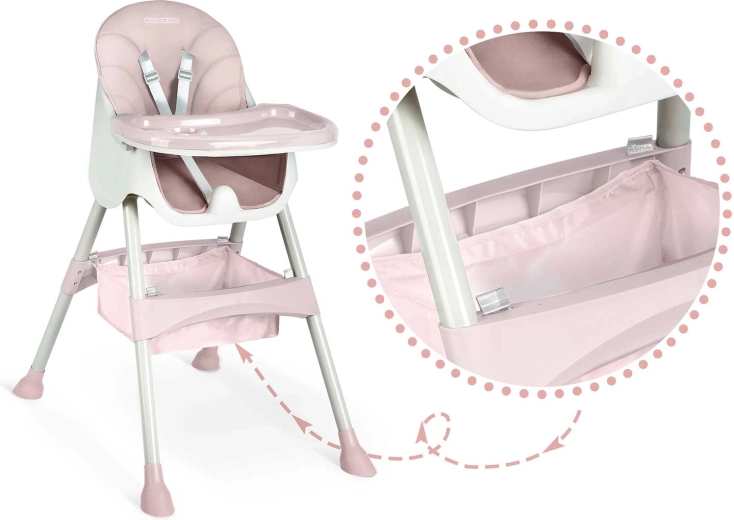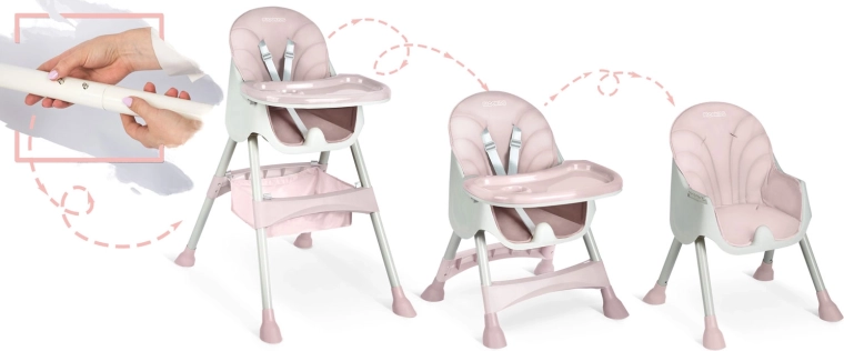 Krzesełko łatwo złożysz do kompaktowych rozmiarów, więc nie zajmuje miejsca nawet w mniejszych mieszkaniach. Trzy poziomy regulacji odległości tacki umożliwią idealne dopasowanie na różne etapy rozwoju dziecka. Praktyczny koszyk pod siedziskiem pomieści chusteczki, zabawki i śliniak – wszystko masz pod ręką.