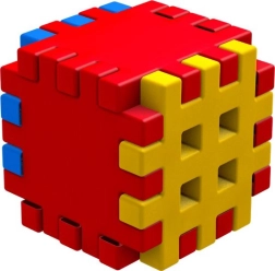 Ząbkowane krawędzie i ażurowe powierzchnie umożliwiają mocne łączenie elementów oraz budowę prostych kształtów 3D, kostek i wież.