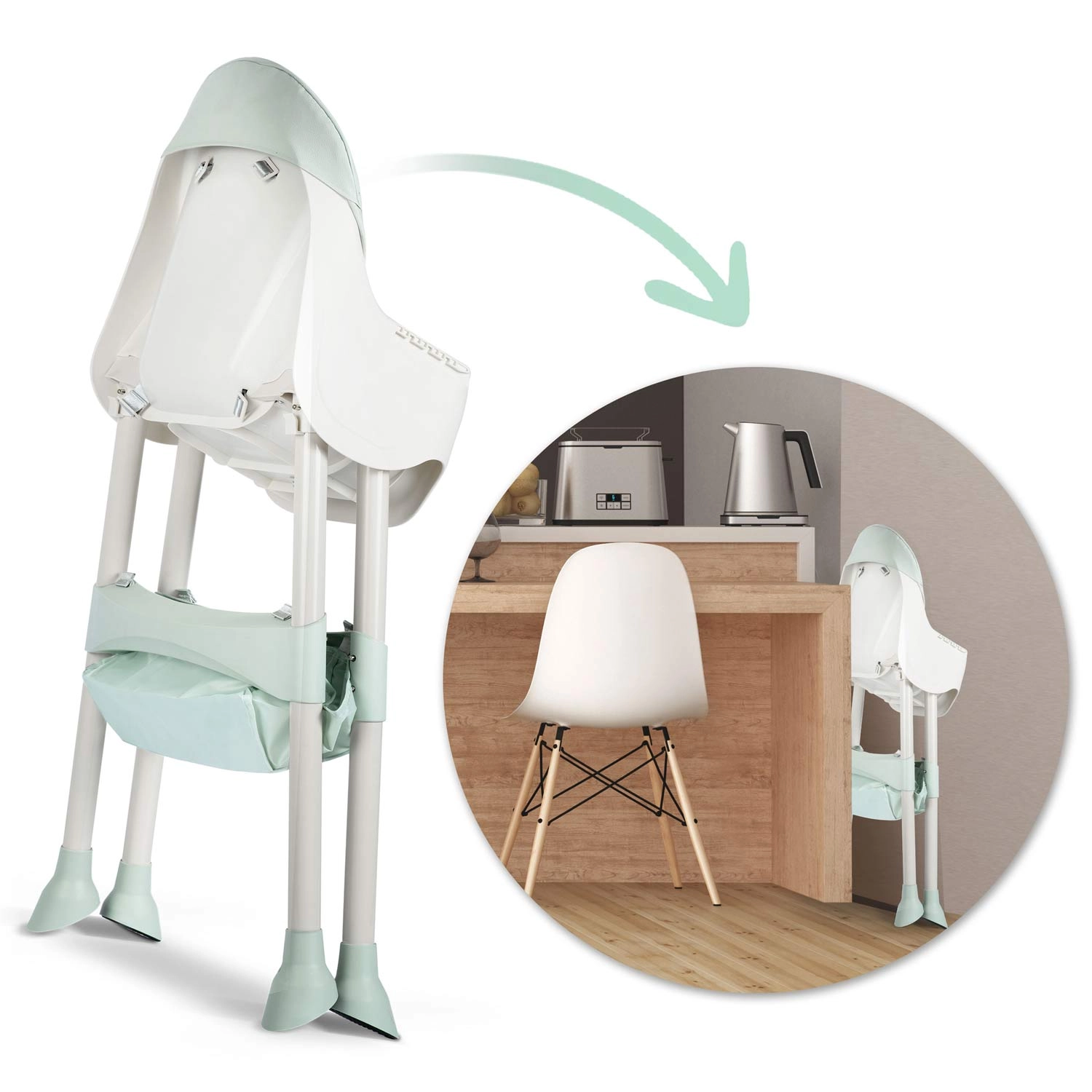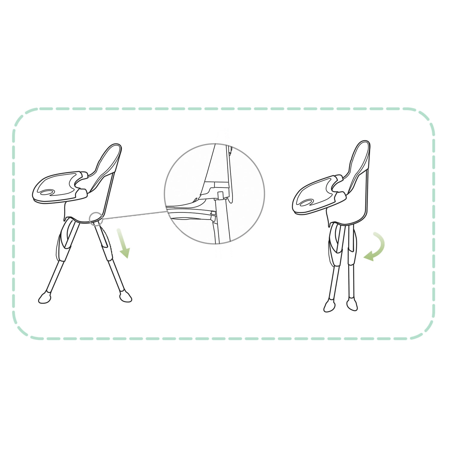 Wysokie krzesełko do karmienia, niskie siedzisko oraz booster – jednym kliknięciem zmienisz konfigurację odpowiednio do wieku i potrzeb dziecka.