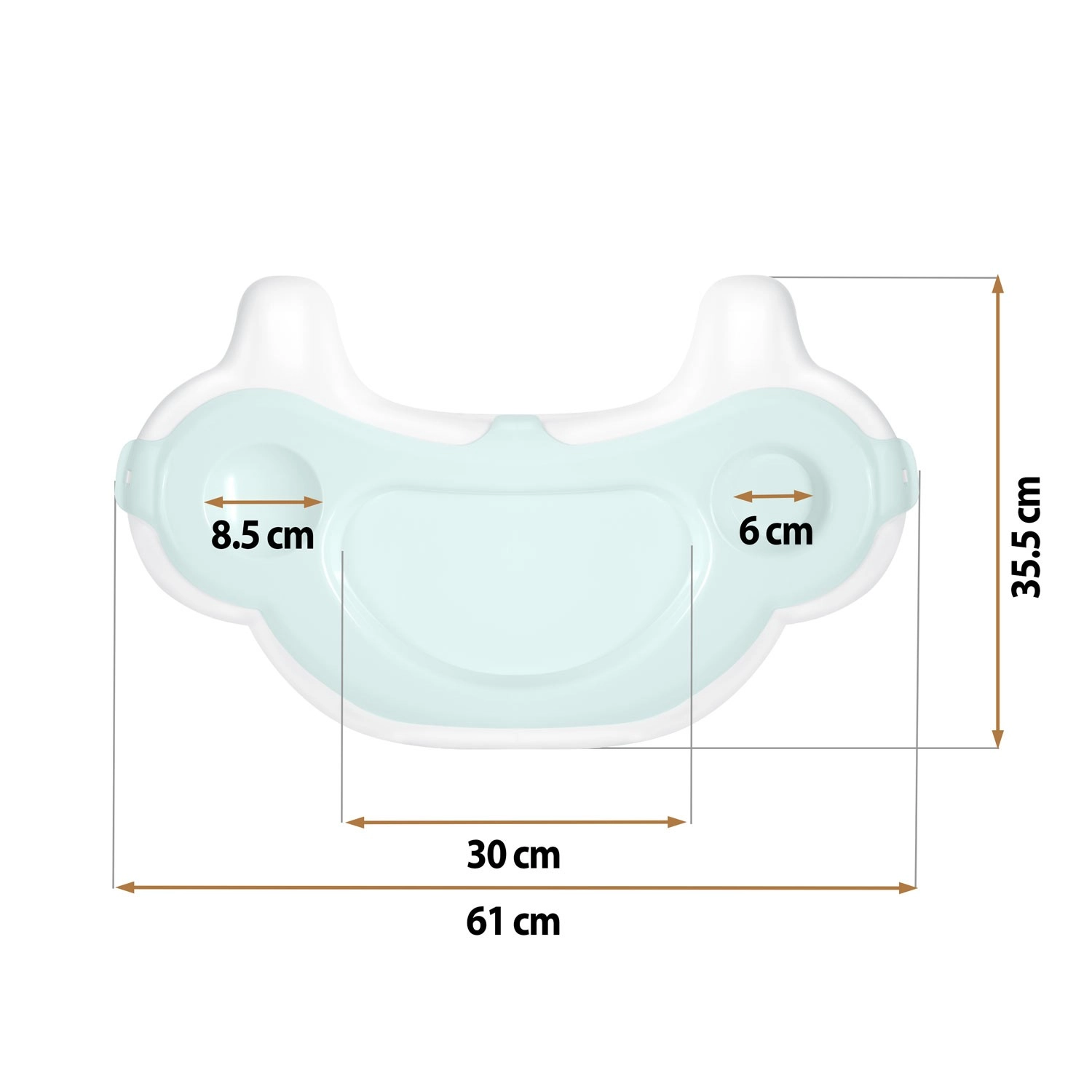 Przemyślana ergonomia zapewnia wystarczająco dużo miejsca na jedzenie i napoje, a wytrzymały materiał sprawdza się w codziennym użytkowaniu. Tacę wykorzystasz nie tylko podczas karmienia, ale także do zabawy i prac plastycznych.