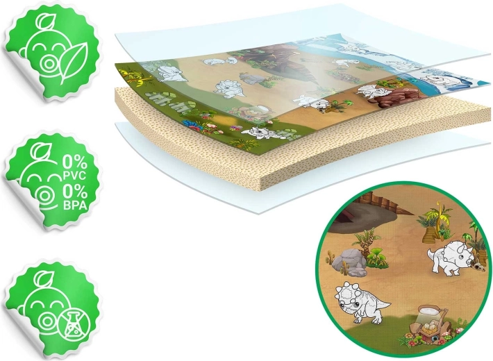 Wielowarstwowa konstrukcja z wysokiej jakości pianki EVA amortyzuje uderzenia, izoluje chłód od podłogi i jest odporna na wodę. Idealna do zabawy, raczkowania i nauki chodzenia.