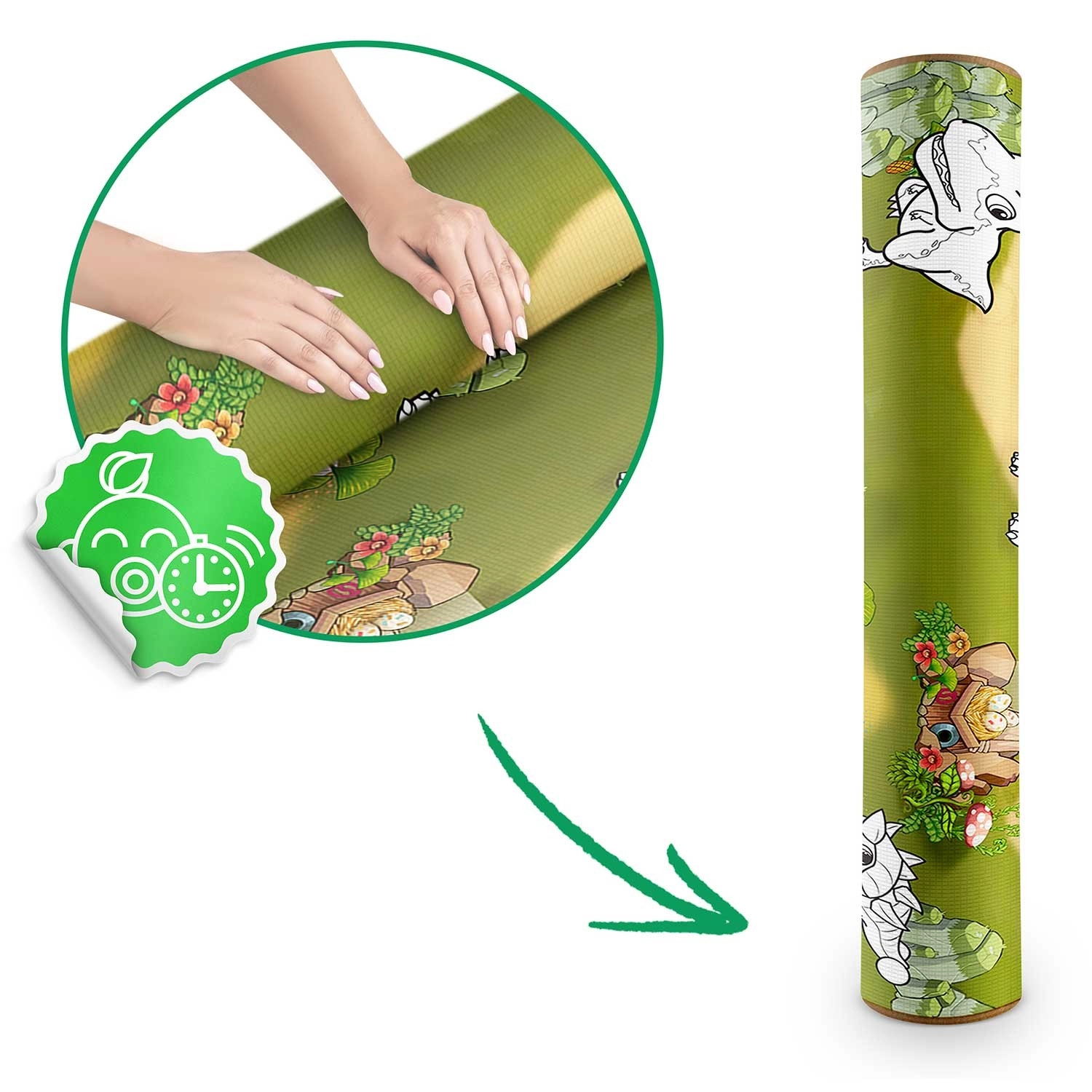 Lekka mata szybko zwija się w kompaktową rolkę. Zabierzesz ją do salonu, pokoju dziecięcego, na taras czy piknik – zawsze gotowa na wygodną zabawę.