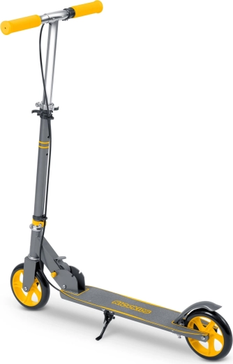 Hulajnogę łatwo złożysz do przenoszenia i przechowywania. Regulowana kierownica i praktyczna nóżka ułatwiają codzienne użytkowanie.