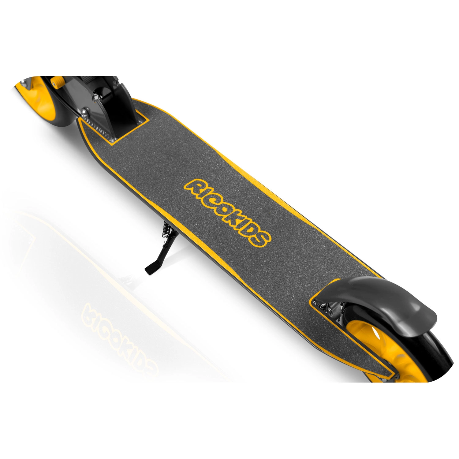 Lekka i poręczna dziecięca hulajnoga RICOKIDS Kodi jest idealna dla dzieci w wieku od 3 do 8 lat. Oferuje regulowaną wysokość kierownicy, duże koła PU 145 mm dla płynnej jazdy, dwa hamulce – ręczny i nożny dla większego bezpieczeństwa oraz szeroki, antypoślizgowy podest dla stabilności. Wysokiej jakości łożyska ABEC‑7 zapewniają cichą pracę i wyższą prędkość. Hulajnoga spełnia normę EN 71.