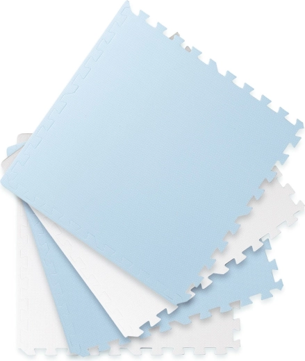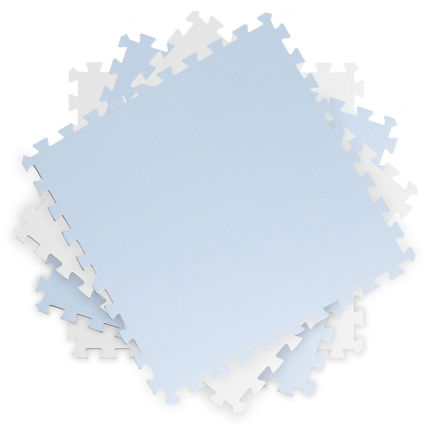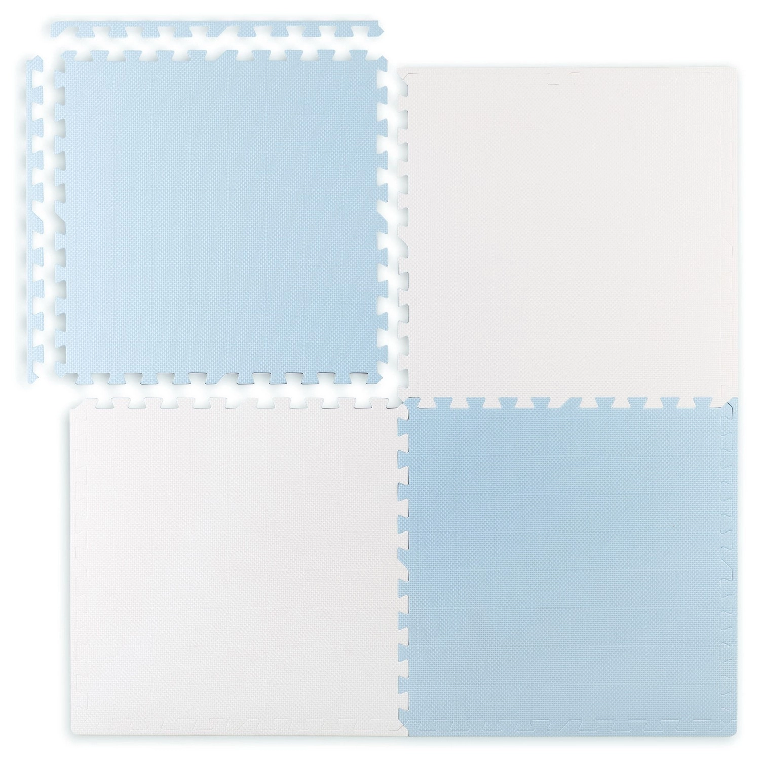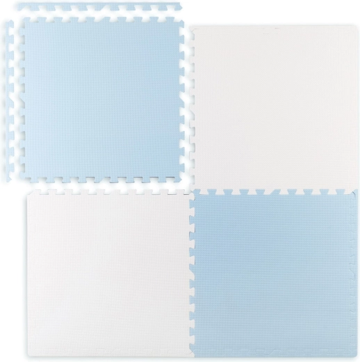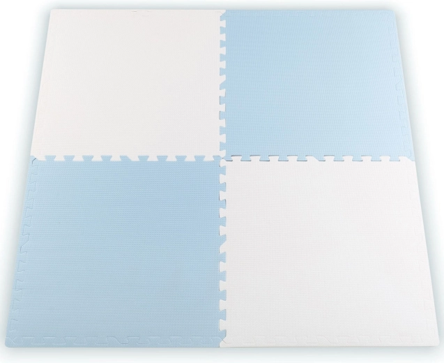 Cztery duże elementy (60 × 60 × 1 cm) z listwami krawędziowymi idealnie do siebie pasują i tworzą powierzchnię 120 × 120 cm. Dzięki dwustronnej niebiesko-białej kombinacji łatwo ułożysz szachownicę, jednolite pola lub inne wzory. Elementy możesz łączyć na płasko lub wykorzystać do tworzenia prostych kształtów 3D, na przykład domku do zabawy.