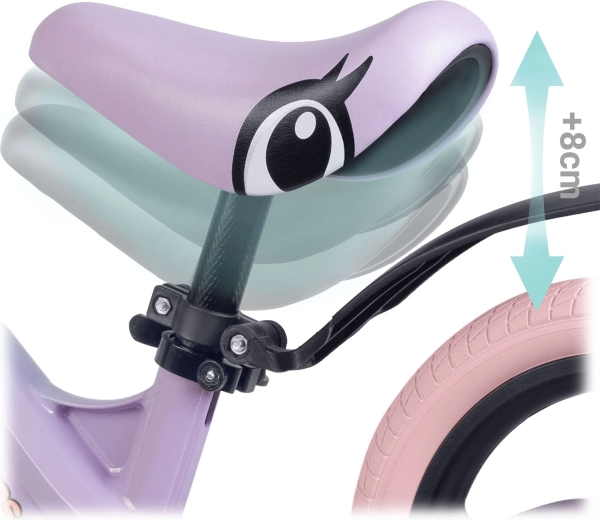 Ergonomiczne piankowe siodełko z zakresem wysokości ok. 35–42 cm zapewnia wygodę i prawidłowe dopasowanie dla różnych wzrostów dzieci.