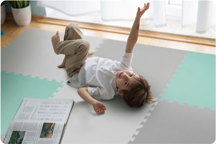 Gruba, 1‑centymetrowa pianka EVA skutecznie tłumi uderzenia, chroni przed zimną podłogą i tworzy wygodne miejsce do zabawy oraz ćwiczeń.