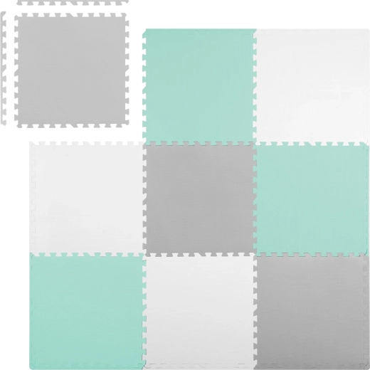 Praktyczna i stylowa dziecięca mata z wysokiej jakości pianki EVA oferuje wymiary 180 × 180 cm (9 elementów 60 × 60 cm) dla bezpiecznej zabawy i pierwszego raczkowania. Miękka amortyzacja, antypoślizgowa powierzchnia, izolacja termiczna od zimnej podłogi oraz wodoodporność zapewniają komfort i łatwą pielęgnację. Elementy można układać w różne kształty, a dzięki neutralnym kolorom mata pasuje do każdego wnętrza.