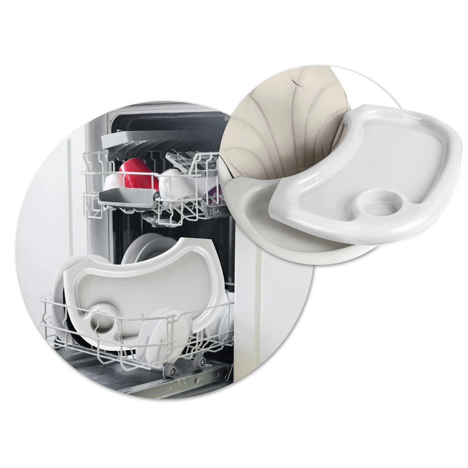 - Łatwa pielęgnacja: stolik z wyjmowaną wkładką, możliwość mycia pod bieżącą wodą lub w zmywarce (wkładka/stolik).