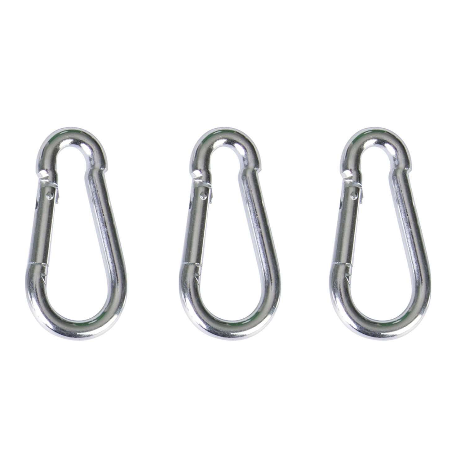 Trzy wytrzymałe karabińczyki z samosprężynującym zamkiem ułatwiają zawieszenie i wymianę akcesoriów. Odpowiednie do łańcuchów, ucha oraz lin.