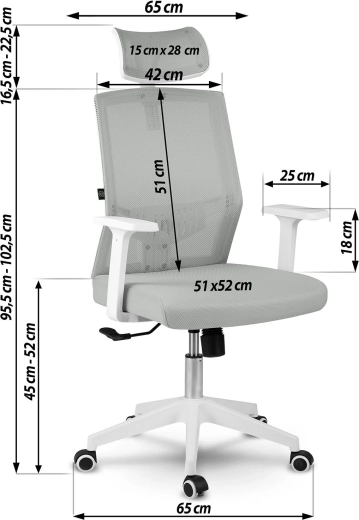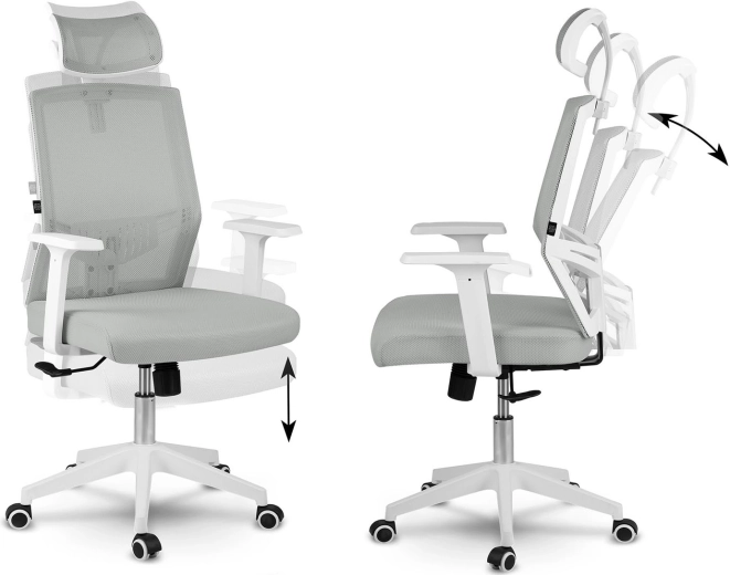 Łatwo je dostosujesz: regulowany zagłówek, mechanizm kołysania z możliwością blokady w pozycji pionowej oraz praktyczne podłokietniki pomagają odciążyć kark, plecy i ramiona podczas długiego siedzenia. Czyste linie i nowoczesny design subtelnie dopełnią każde wnętrze.