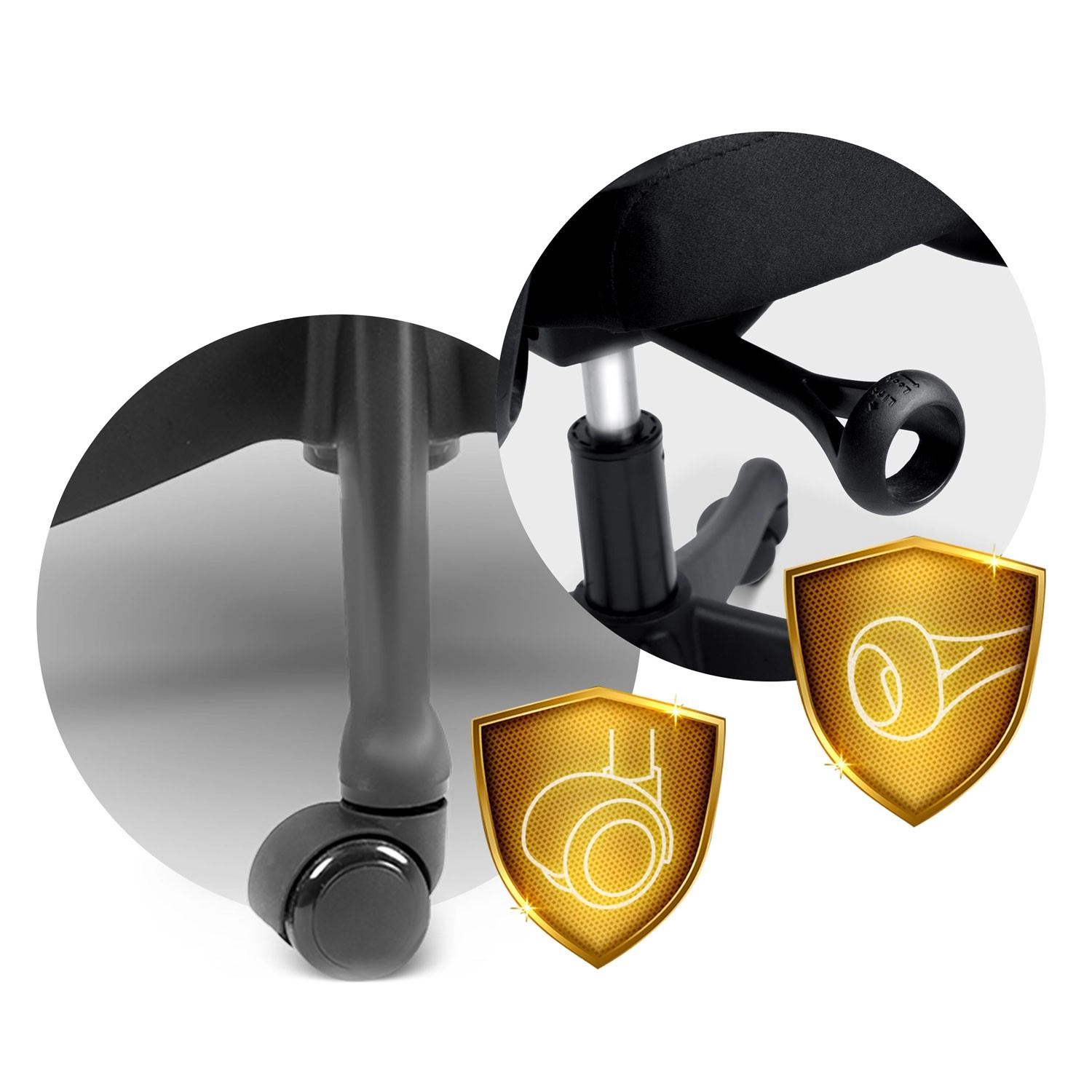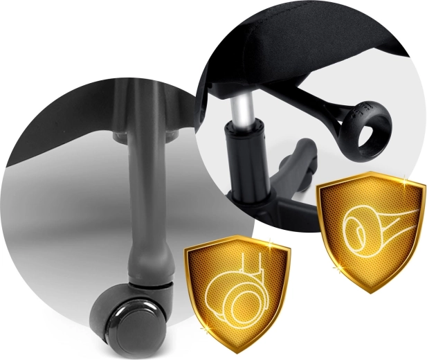 Pięcioramienna podstawa z nylonowo-kauczukowymi kółkami porusza się cicho i nie rysuje podłogi, a konstrukcja zapewnia stabilność do 120 kg.