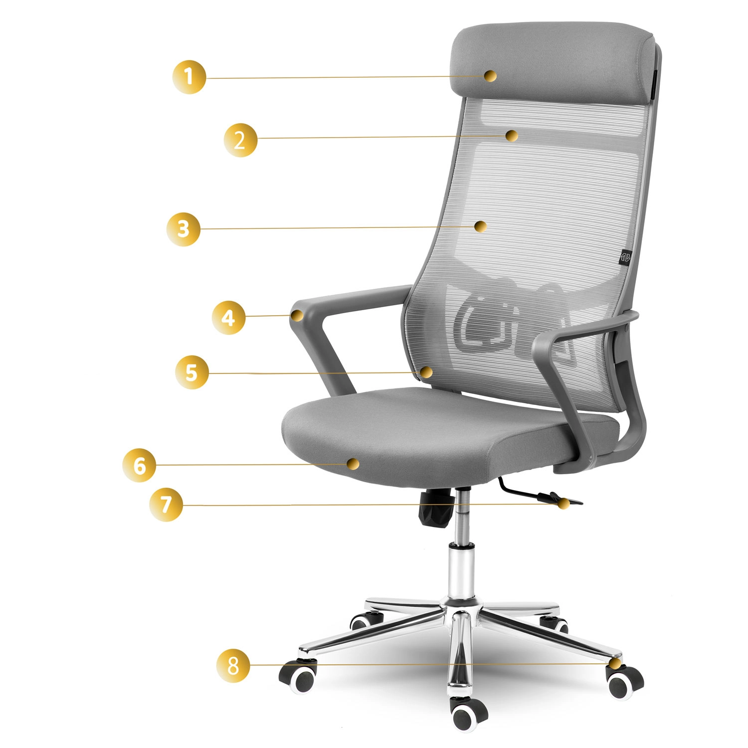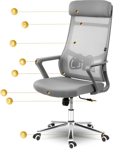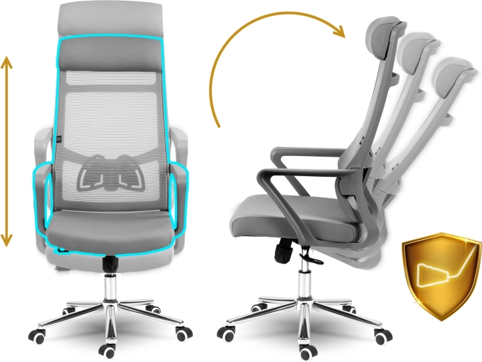 Mikrosiateczka zapewnia cyrkulację powietrza, a profilowane podparcie lędźwi pomaga utrzymać zdrową postawę przez cały dzień.
