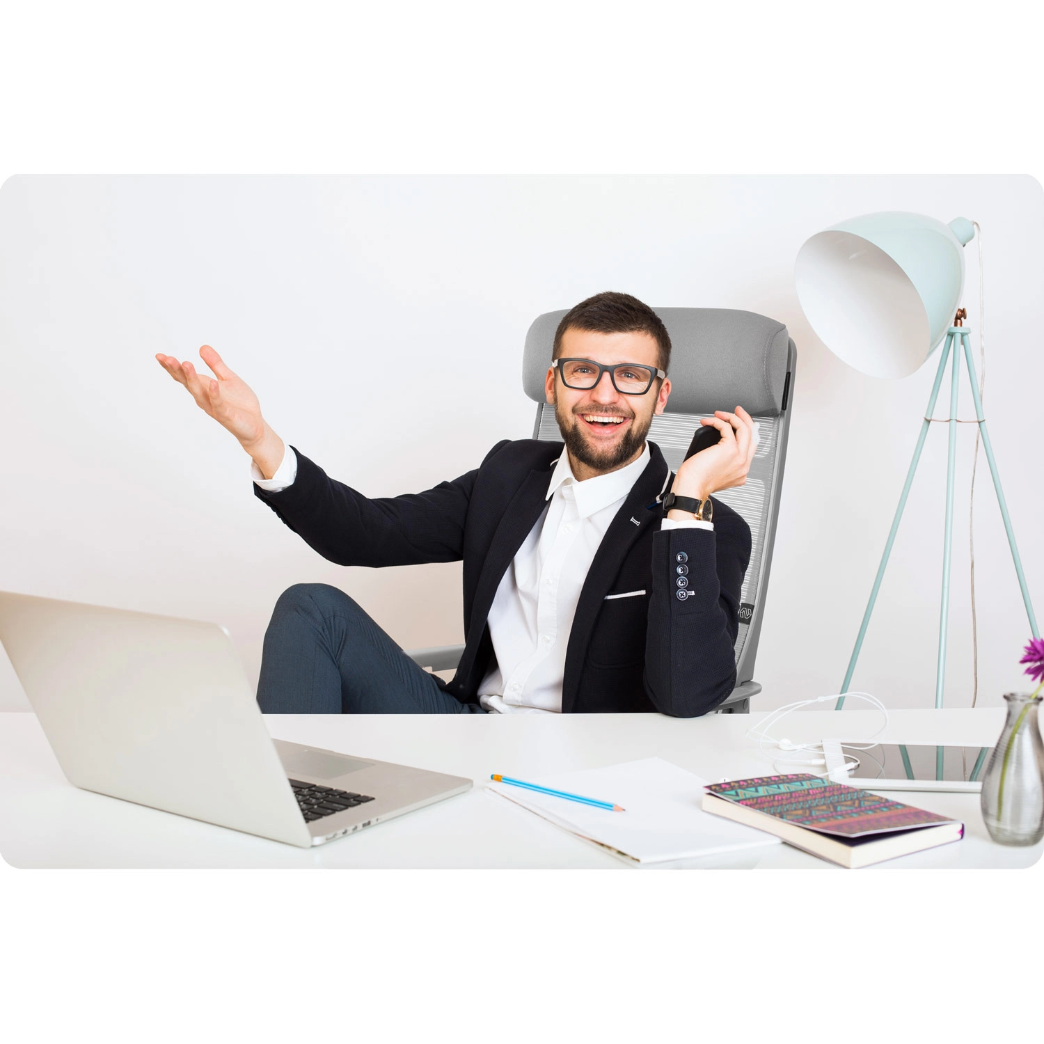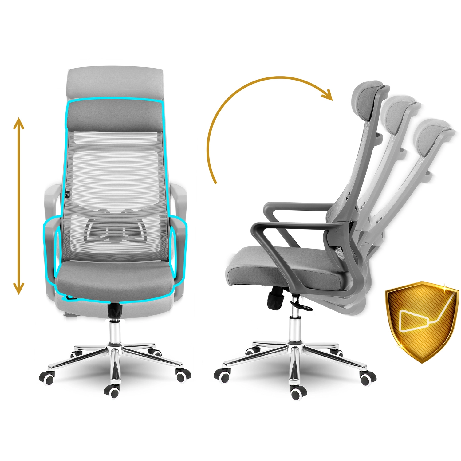 Zintegrowany mechanizm bujania SoftSwing pozwala na przyjemne kołysanie dla krótkiego odpoczynku, a w razie potrzeby możesz go łatwo zablokować. Podparcie lędźwi oraz miękki zagłówek pomagają utrzymać zdrową postawę. Stabilne podłokietniki odciążają ramiona i nadgarstki podczas pisania i rozmów telefonicznych.