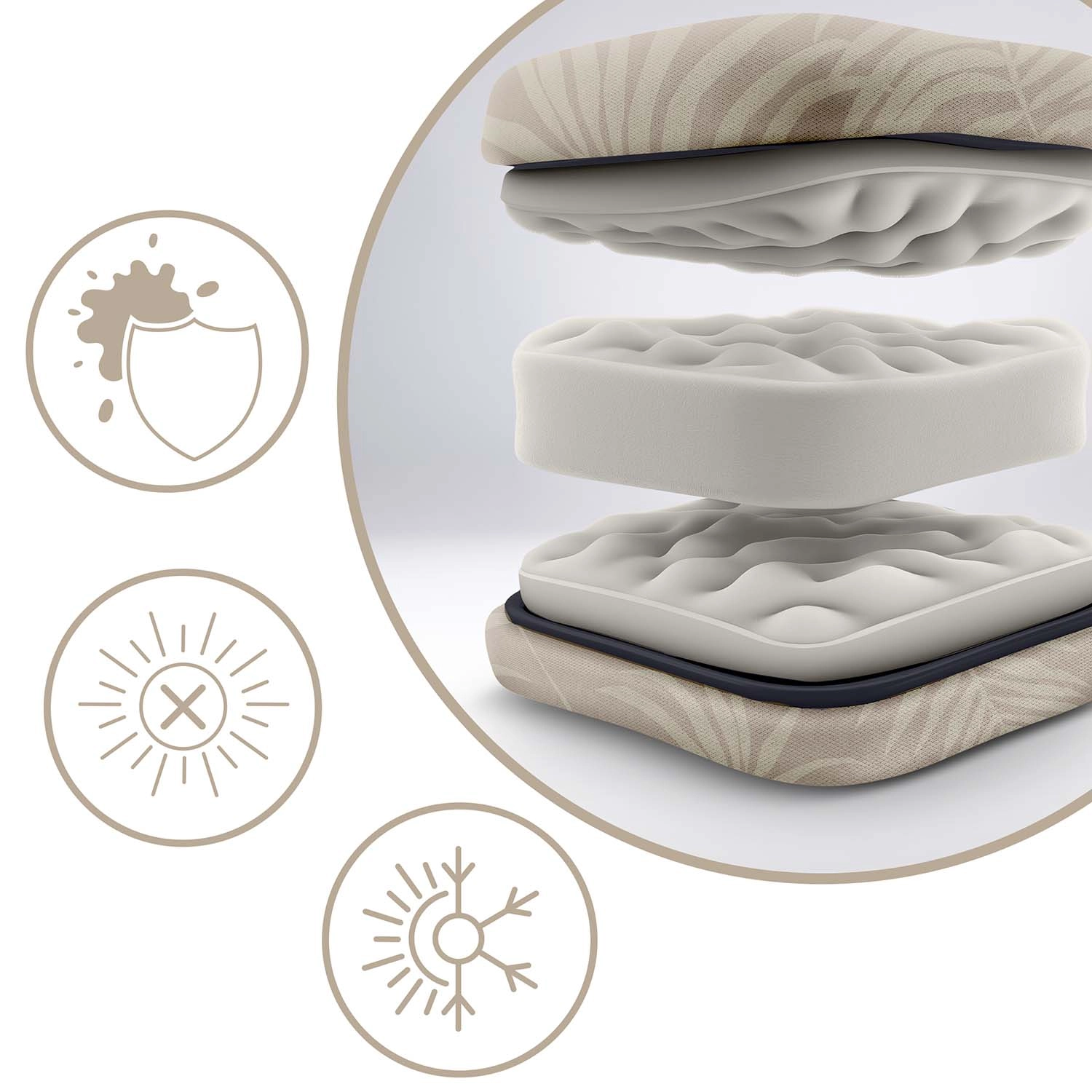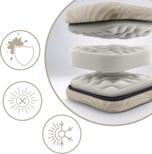 - Wyjątkowy komfort: miękka, sprężysta i pikowana poduszka z zagłówkiem odciąża kark i szyję.