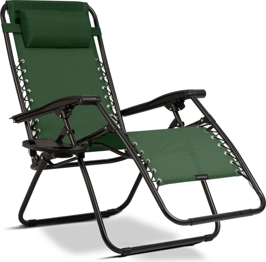 Praktyczny boczny mini stolik z uchwytem na napój i przegródką na telefon utrzymuje wszystko, co ważne, w zasięgu ręki. Poduszka pod głowę zwiększa wygodę podczas długiego leżenia, a solidna stalowa rama z powłoką proszkową zapewnia stabilność i długą żywotność. Leżak składa się i rozkłada szybko, jest lekki i kompaktowy, co ułatwia przewożenie w samochodzie.