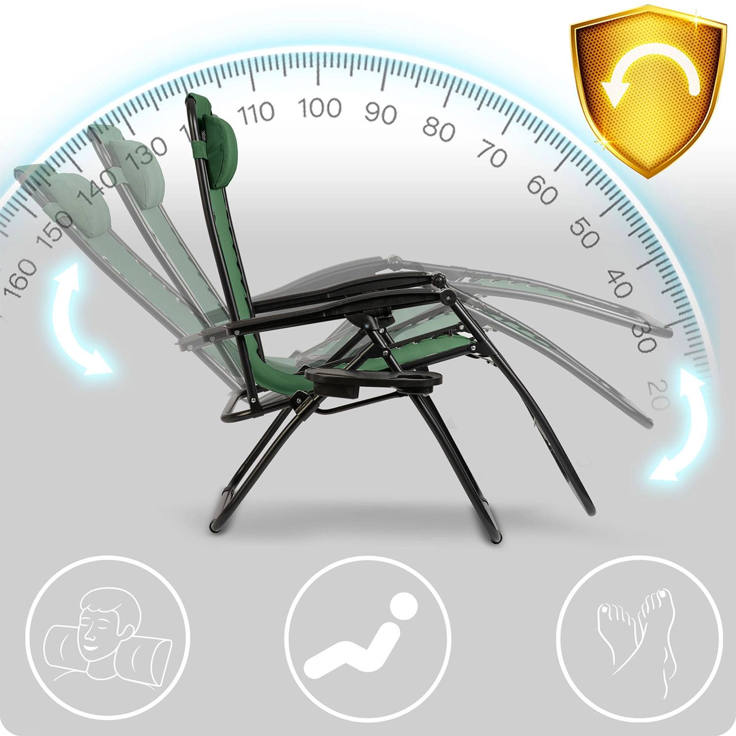 Ciesz się doskonałym relaksem na zewnątrz z zestawem dwóch leżaków grawitacyjnych SOFOTEL ChillWell w eleganckim zielonym kolorze. Dzięki możliwości płynnej regulacji nachylenia łatwo znajdziesz idealną pozycję, a odpinana poduszka zapewni wsparcie karku i głowy. Praktyczny boczny stolik z uchwytem na napój i telefon sprawi, że wszystko będziesz mieć pod ręką. Trwała tkanina textilene oraz stalowa rama malowana proszkowo gwarantują stabilność, długą żywotność i łatwą pielęgnację.