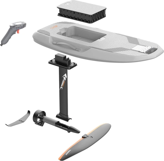 Kompletny zestaw z deską, baterią, masztem, silnikiem, skrzydłami i bezprzewodowym kontrolerem. Łatwy montaż, wymiana komponentów i rozbudowa bez konieczności kupowania nowej deski.