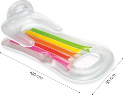 Nadmuchiwana leżanka INTEX łączy styl, wygodę i trwałość. Przezroczyste wykonanie z kolorowymi segmentami ożywi każdy basen, a ergonomicznie wyprofilowane miękkie oparcie pleców zapewni relaks bez kompromisów. Praktyczny uchwyt na napój utrzyma orzeźwienie zawsze pod ręką.