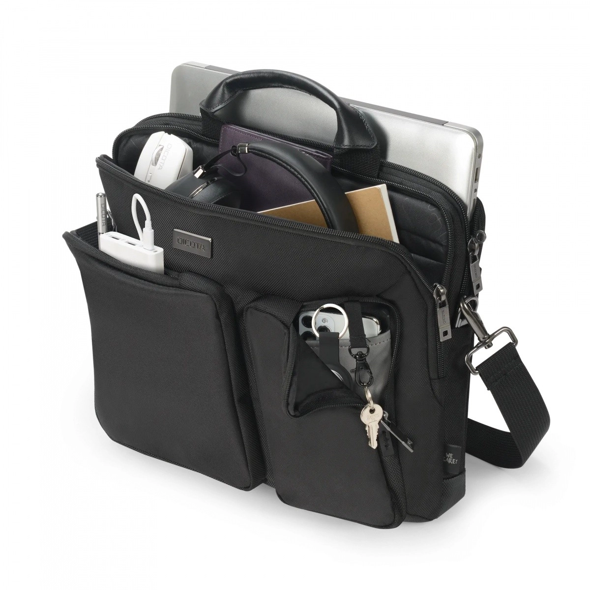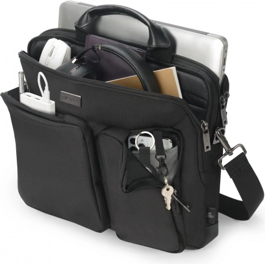 Przednie kieszenie z organizerem pomieszczą mysz, ładowarkę, notes i drobiazgi – wszystko czytelnie na swoim miejscu.