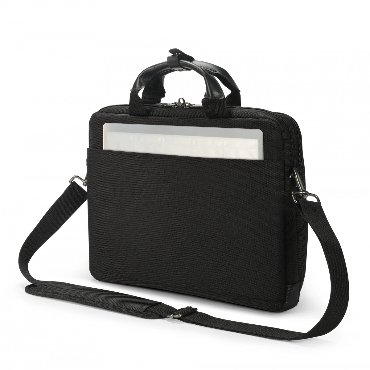 Odpinany, regulowany pasek na ramię oraz wyściełane uchwyty zapewniają komfort podczas dojazdów i podróży.