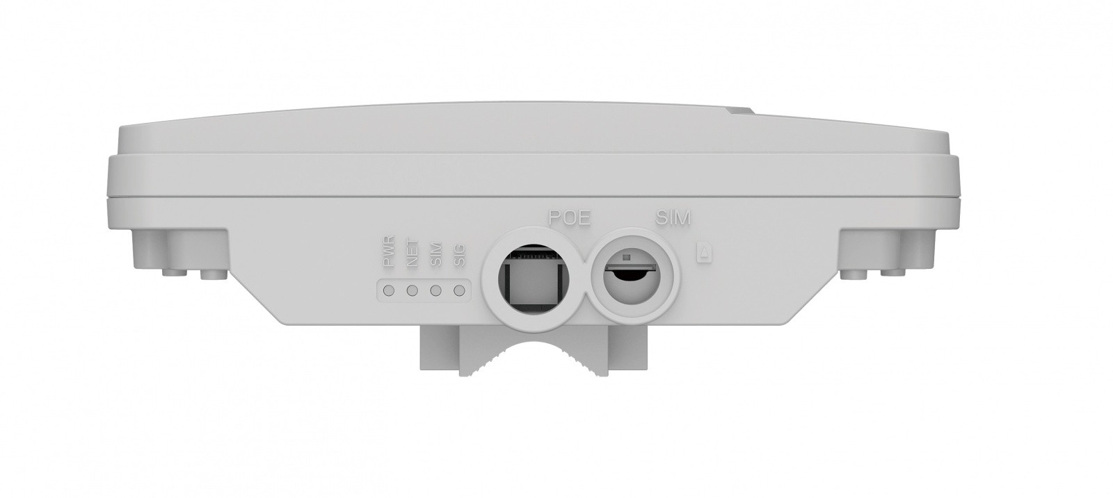 - Gniazdo na kartę SIM, zasilanie PoE, diody statusu (Power/Network/Signal)