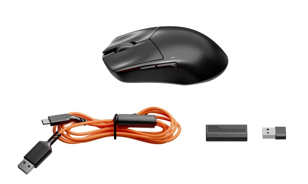 Optyczne przełączniki Omron gwarantują szybkie, miękkie i ciche kliknięcia bez opóźnień debounce. Ślizgacze PTFE z zaokrąglonymi krawędziami zapewniają jedwabiście gładki poślizg na każdej podkładce. Za pomocą be quiet! IO Center łatwo dostosujesz DPI, LOD, polling rate, mapowanie przycisków i makra oraz zapiszesz je w pamięci wbudowanej.