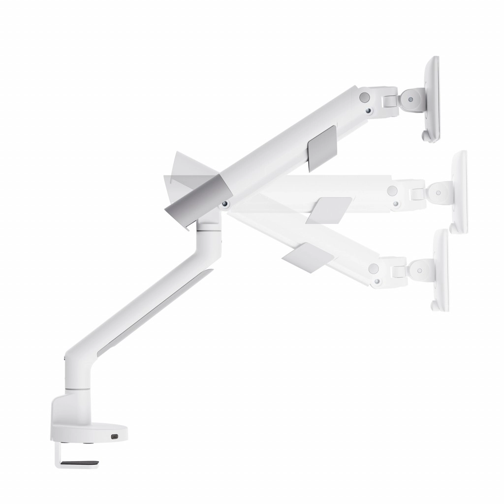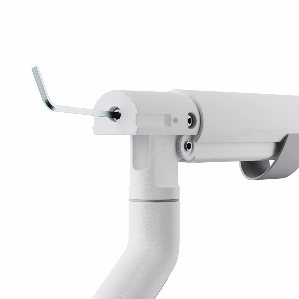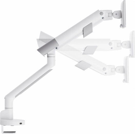 Maksymalizuj ergonomię i przestrzeń na biurku z eleganckim białym ramieniem ze sprężyną gazową. Płynne wyważenie pozwala ustawić monitor dokładnie na wysokości oczu, zmniejszyć zmęczenie karku i poprawić postawę. Zintegrowane zarządzanie kablami utrzyma stanowisko pracy w czystości i porządku, a dwa porty USB 3.0 w podstawie przyspieszą podłączanie peryferiów.