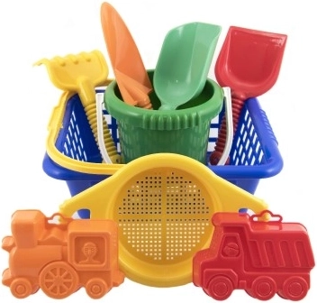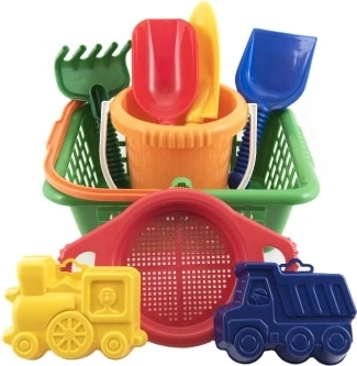 - Koszyk, wiaderko, sitko, łopatka, szpadel, grabki, 2 foremki