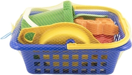 Koszyk mieści wszystkie elementy zestawu, więc po zabawie masz je szybko posprzątane i gotowe na kolejne przygody. Świetny towarzysz na piaskownicę, do ogrodu i na wakacje.