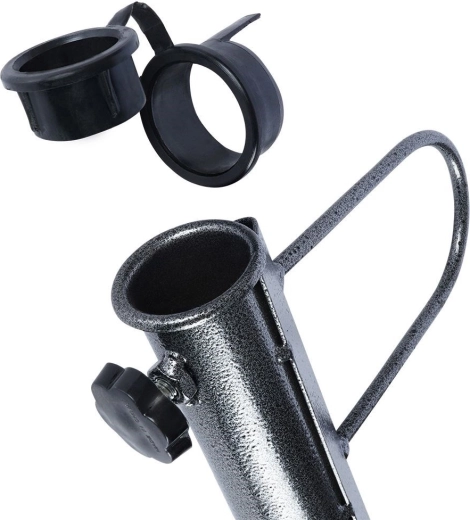 W zestawie plastikowe adaptery dla średnic 25, 32 i 35 mm. Stojak łatwo dopasujesz do większości ogrodowych i plażowych parasoli.