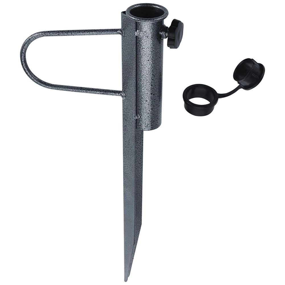 Praktyczny stojak do szybkiego montażu parasola bez konieczności użycia podstawy. Wystarczy go wbić w ziemię i dokręcić boczną śrubę. Wytrzymałe metalowe wykonanie z powłoką ochronną sprawdzi się w ogrodzie, na tarasie i na plaży, zapewniając niezawodną stabilność Twojego parasola.